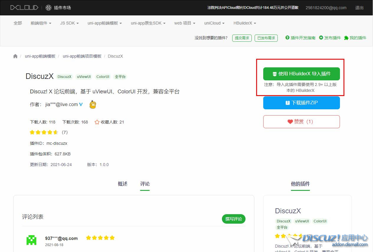 首先打開https://dcloud.io/下載HBuilderX。 ![]() 應(yīng)用中心搜索小云APP安裝。https://addon.dismall.com/plugins/appbyme_app.html ![]() 打開https://ext.dcloud.net.cn/plugin?id=5450#rating 導(dǎo)入插件。 ![]() ![]()