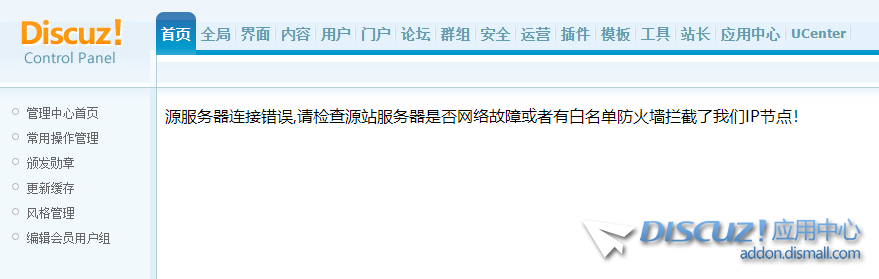 源服務(wù)器連接錯(cuò)誤,請(qǐng)檢查源站服務(wù)器是否網(wǎng)絡(luò)故障或者有白名單防火墻攔截了我們IP節(jié)點(diǎn)! Discuz! X3.4 R20210816 UTF-8 上周都還能用,今天就不可以了! ... 查看全文
