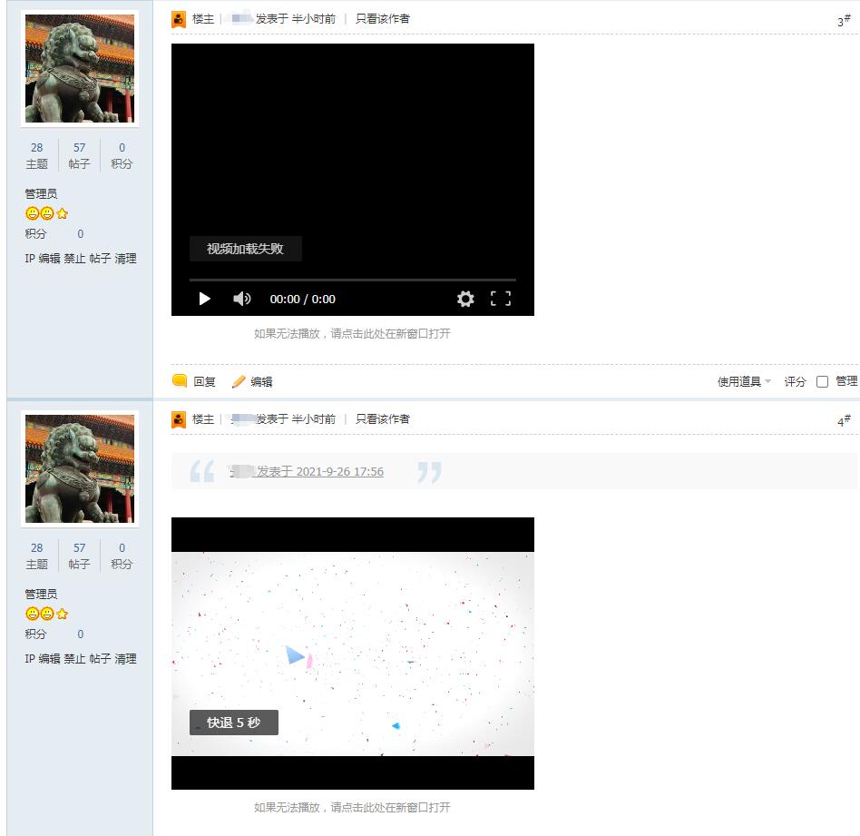 免費版帶本地上傳播放MP4視頻 應(yīng)該可以解決你遇到的問題 你可以試試:https://addon.dismall.com/plugins/apoyl_video.html 當(dāng)然特大的視頻不建議本地化,推薦使用 直傳騰訊云點播視頻:https://addon.dismall.com/plugins/apoyl_tencentvideo.html |