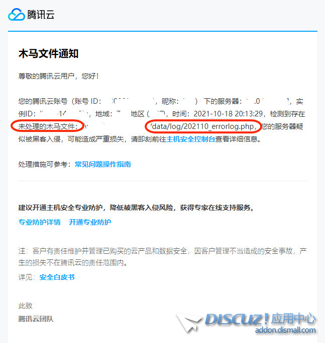 昨天晚上收到騰訊云通知,說是/data/log/202110_errorlog.php這個文件是木馬文件,我想知道/data/log/目錄下一大堆的文件都是些什么文件,能否都統(tǒng)統(tǒng)直接刪除掉,我的DZ是最新的升級版本。請高手告知一下。 ... 查看全文