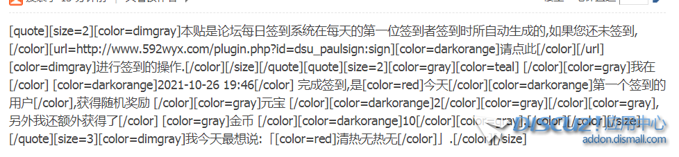 初錦 發(fā)表于 2021-10-28 20:44 我用的也是這個(gè)簽到插件,一直都在用生成簽到貼的功能,請問生成簽到貼會(huì)造成什么麻煩? |