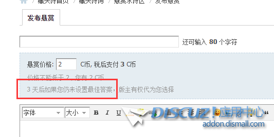如圖 多少天后如果沒(méi)有設(shè)置最佳答案。版主有權(quán)代為選擇。。 這個(gè)天數(shù)在哪里設(shè)置來(lái)著 給忘記了。。 查看全文