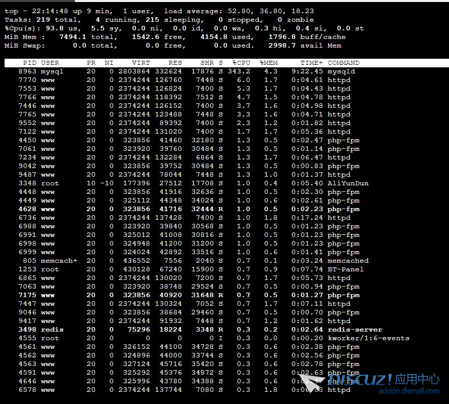 從phpfpm看有不少的請(qǐng)求,從mysql看是主要的cpu占用,可以看慢日志,也可以在占用率高的時(shí)候看是否有鎖表等情況,sql是哪些較慢,如果sql不好優(yōu)化可以用上讀寫分離 |