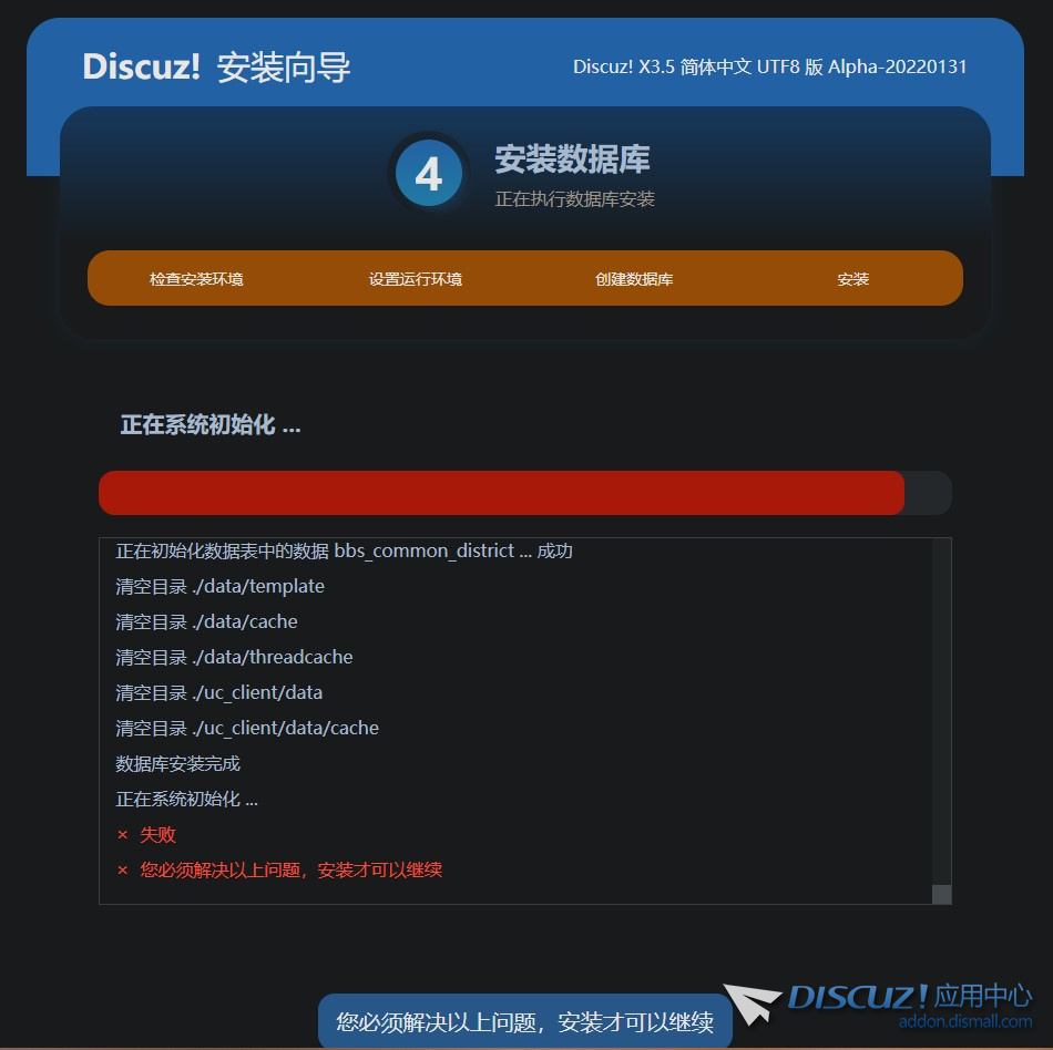 老板突發(fā)奇想要我下班時間做個論壇,但是提供的服務(wù)器只有php8.0,我也不想浪費時間配置環(huán)境于是部署了3.5Alpha版本,但是系統(tǒng)初始化時失敗,提示讓我解決這些問題,但是并沒有顯示有什么問題,請問怎么解決或者log ... 查看全文