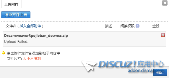 沒有截圖…… 建議 上傳小附件試試, 小于2M的, 如果不行的話 估計就是 沒有寫入權(quán)限 |