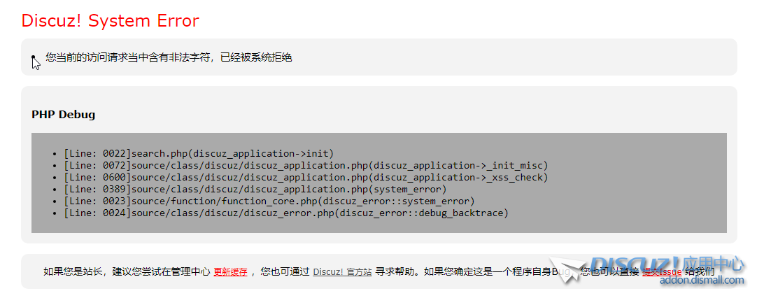 您當前的訪問請求當中含有非法字符,已經(jīng)被系統(tǒng)拒絕 在自己安裝的discuz3.5版本網(wǎng)站里測試了下,搜索特殊字符,如“趙鵬人聲低音炮-閃亮的日子 (趙鵬人聲低音炮1)”,依舊會出現(xiàn)上圖搜索錯誤。這是一個老問題了 ... 查看全文