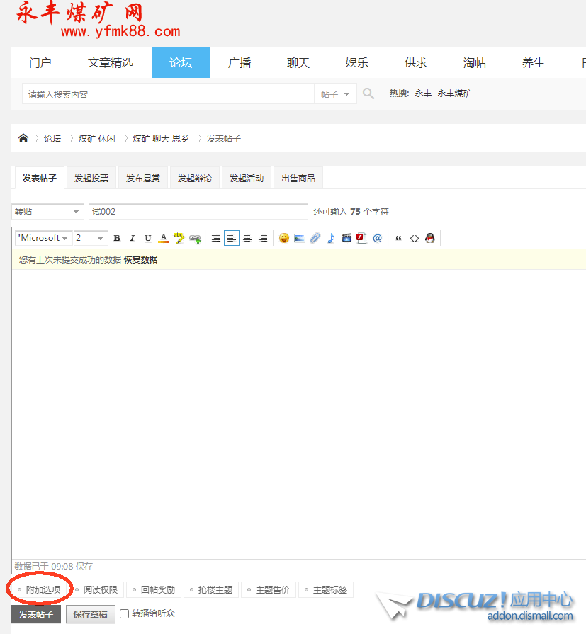 大家都知道 論壇無法發(fā)視頻了, 現(xiàn)在的優(yōu)酷等網站視頻 無法發(fā)到論壇上 發(fā)上來也不顯示,我研究了一下 可以用下面的方法。 一 后臺開啟可以發(fā)貼 HTML代碼,發(fā)貼 選附加選項——選中HTML代碼,發(fā)一個空貼(管理員要 ... 查看全文