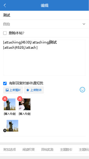 科站網(wǎng) 發(fā)表于 2023-1-6 13:05 感謝您的修復(fù)!代碼已經(jīng)生效,不過(guò)觸屏版編輯時(shí)似乎附件沒(méi)有列表出來(lái),當(dāng)然也就無(wú)法編輯刪除了,建議繼續(xù)完善一下! |