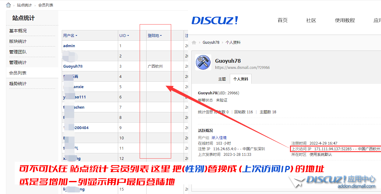 @老周部落 大佬可以在 站點(diǎn)統(tǒng)計(jì)? 會員列表 處 增加一個地址的信息顯示嗎? 查看全文
