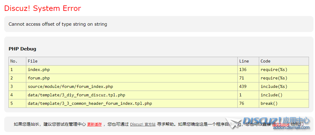 論壇首頁和后臺更新緩存都報錯,只好退回去了。 報錯頁面分別是: 查看全文