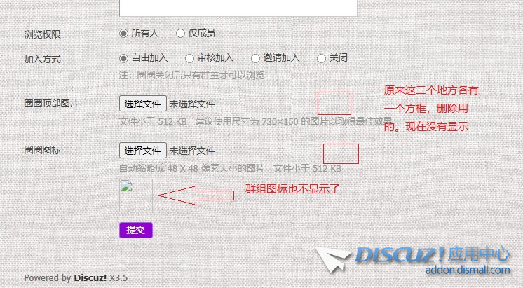 這個(gè)問題在程序新裝時(shí),還是正常的。可以上傳和刪除。 不知道啥時(shí)候,這個(gè)刪除的小方框沒有了,群組圖標(biāo)也不顯示了。 群組圖標(biāo)不能顯示,但上傳圖片還是正常。這整得沒法刪除。 3.5正式版出來升級(jí)后,問題依然 ... 查看全文