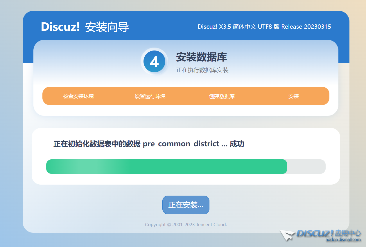 安裝過程中,走到 “正在始化數(shù)據(jù)表中的數(shù)據(jù) pre_common_district ... 成功” 就卡死不動(dòng)了,已經(jīng)超過1個(gè)小時(shí)。 日志如下: 建立數(shù)據(jù)表 pre_forum_filter_post ... 成功 建 ... 查看全文