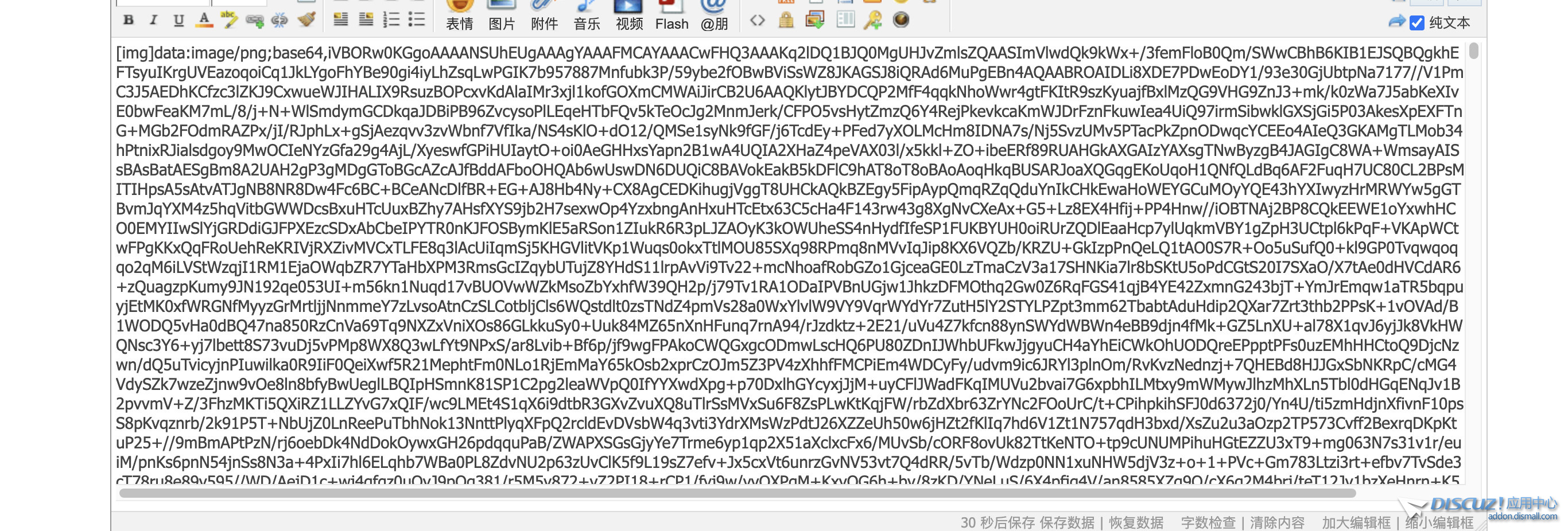 這個問題已經(jīng)反復提及了,DZ本身不支持粘貼圖片的行為,因為向內(nèi)容數(shù)據(jù)庫里插入一大段圖片代碼是不符合預期的。目前如果要支持粘貼圖片,推薦使用插件,比如官網(wǎng)這邊用的是:https://addon.dismall.com/plugin ... on=6682AJJRKMUUAUPZ |