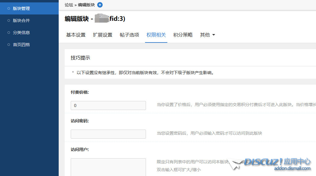 ![]() ![]() 如圖,需要開啟對應(yīng)的認(rèn)證,才能在版塊權(quán)限中顯示對應(yīng)的項(xiàng)目! |