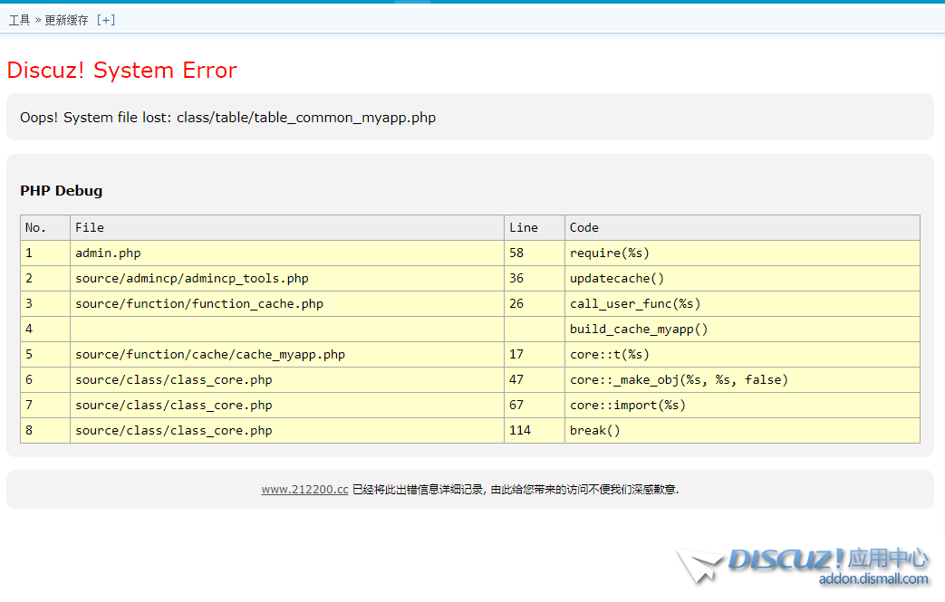 更新緩存 顯示Oops! System file lost: class/table/table_common_myapp.php 查看全文