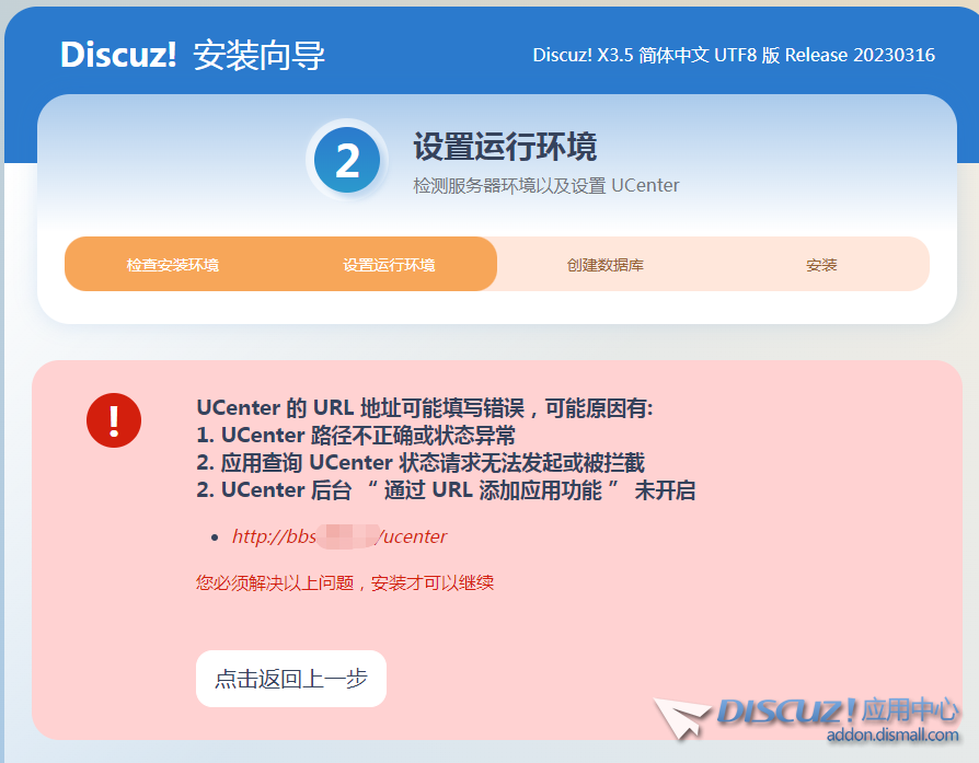 X3.5必須對(duì)接X(jué)3.5的UC,不可以把X3.5和X3.4接在一起 如果不是這個(gè)問(wèn)題,那建議優(yōu)先檢查報(bào)錯(cuò)信息里提到的 通過(guò)URL添加應(yīng)用功能 是不是沒(méi)有開(kāi)啟。這個(gè)開(kāi)關(guān)不打開(kāi)是不能添加新應(yīng)用的。 注意:成功添加以后需要及時(shí)關(guān)閉,否則可能會(huì)有安全風(fēng)險(xiǎn)。 |