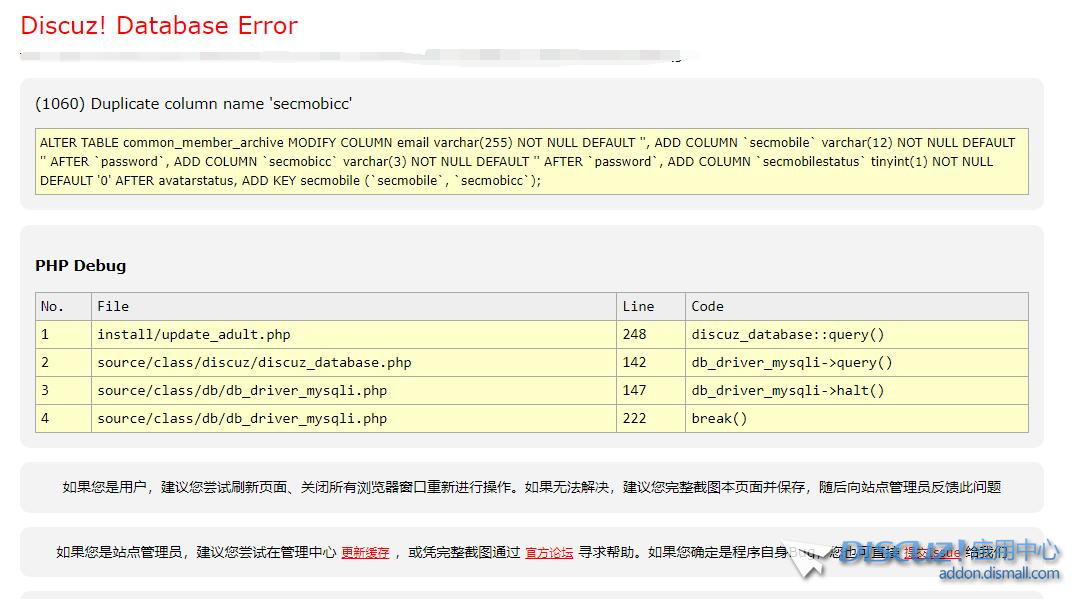 discuz3.4升級到3.5報錯是怎么回事 查看全文