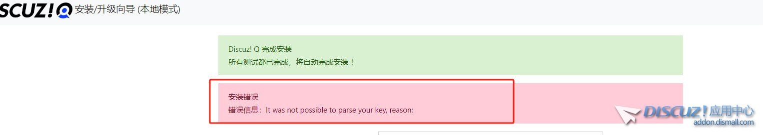 數(shù)據(jù)信息填寫(xiě)后無(wú)法下一步顯示錯(cuò)誤:安裝錯(cuò)誤錯(cuò)誤信息:It was not possible to parse your key, reason: 查看全文