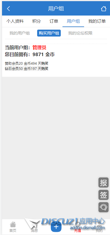 x3.5 手機(jī)版購買用戶組的頁面,官方的太丑了,誰做美化了,可不可以分享一下,可以付費 應(yīng)用中心 都是賣的現(xiàn)金開通會員組的,我就想要這個積分兌換的功能! ... 查看全文