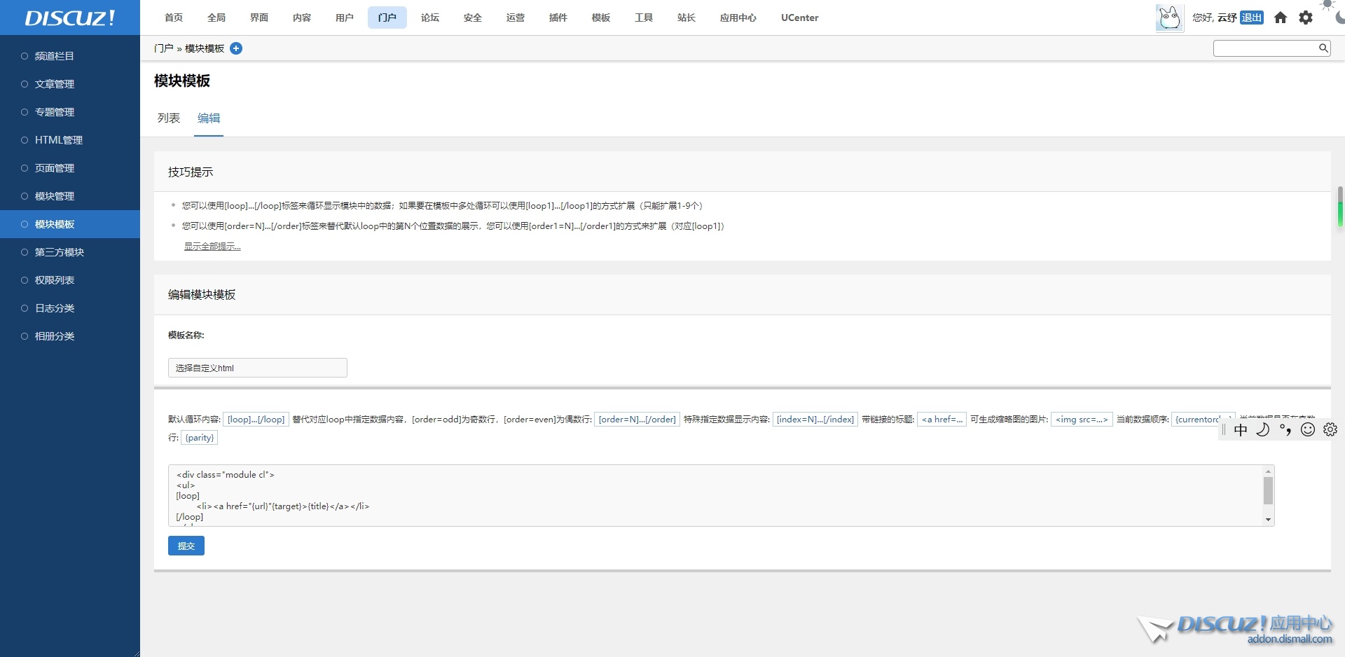 反而在門戶 > 模塊管理 > 數(shù)據(jù)調(diào)用 >模塊分類 “靜態(tài)模塊”添加調(diào)用 >