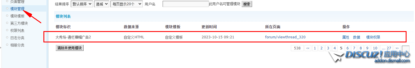 ![]() 罵你的 發(fā)表于 2024-2-16 17:12 你圖里的“所在頁面”下邊的---forum/viewthread_320 ,點進去就會到那個頁面,在那個頁面的最上面右邊點擊diy(高級模式),進入diy找到這個模塊在編輯那里有刪除鍵。 |