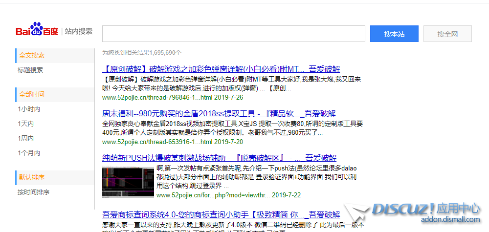 如何把Discuz的搜索結(jié)合到百度站內(nèi)搜索呀 求告知或者有沒有這樣的插件推薦! 查看全文