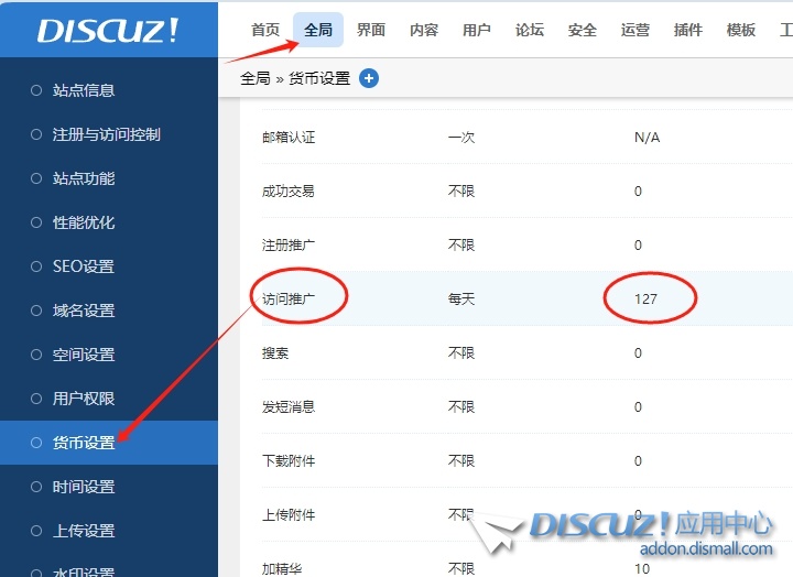 由于我自己網(wǎng)站DIY過,積分設(shè)置,被我DIY成貨幣設(shè)置了,積分策略里面,有一個(gè)訪問推廣獎(jiǎng)勵(lì)設(shè)置。 獎(jiǎng)勵(lì)次數(shù)上限,最高只有127次,沒法再多了。 想知道在哪個(gè)文件,可以修改這個(gè)獎(jiǎng)勵(lì)次數(shù)上限。 ... 查看全文