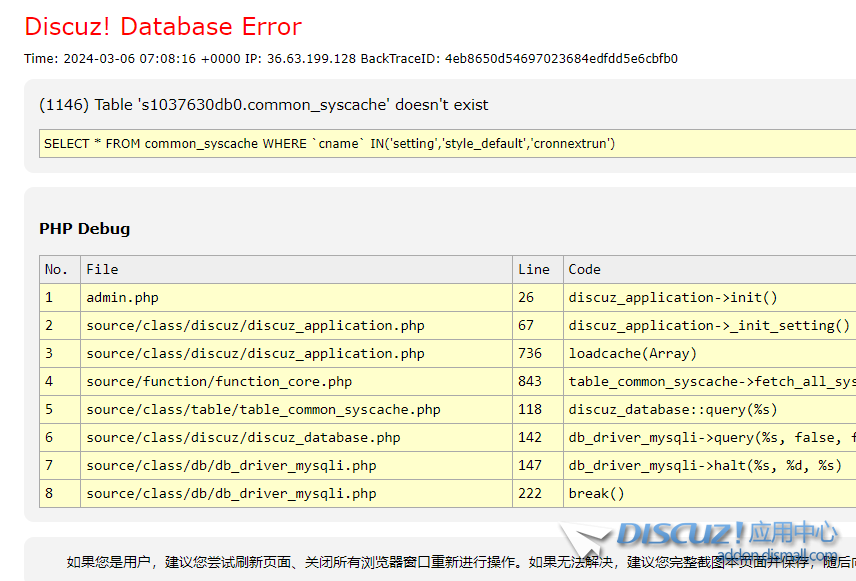 看下pre_common_syscache緩存表是否存在,沒有就創(chuàng)建 |