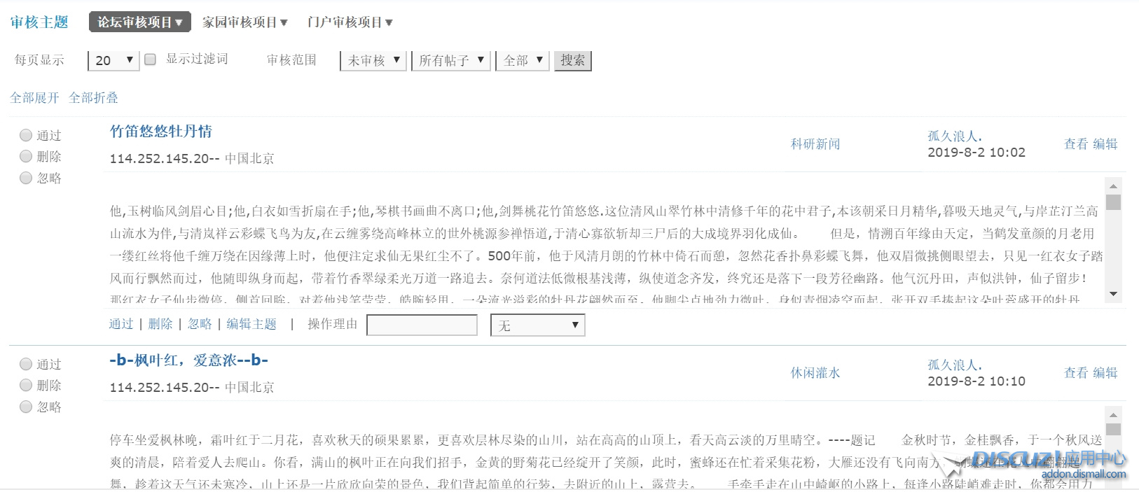 后臺經(jīng)常自動發(fā)一些帖子,發(fā)的帖子是自動進(jìn)入了審核狀態(tài),但是前臺增加了發(fā)帖總數(shù),不知道是哪里的問題? 查看全文