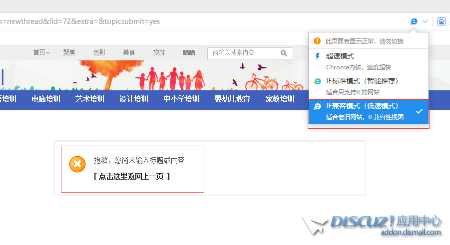 2345瀏覽器,切換到低速模式后,不能發(fā)帖,永遠(yuǎn)提示未輸入標(biāo)題。 有沒(méi)有解決辦法??? 至于為啥要用低速模式。咱也不知道,咋也不敢問(wèn)。 查看全文