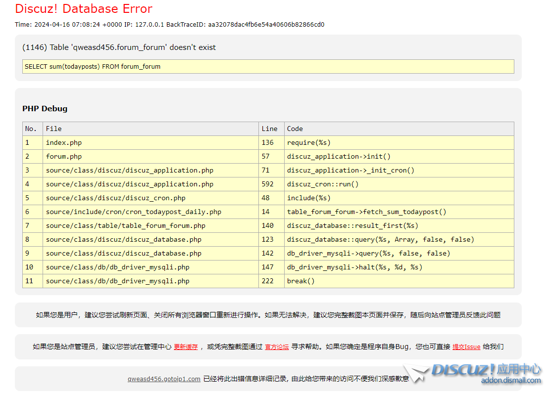 上邊的截圖已經(jīng)告訴你了, forum_post 不存在; 估計(jì) 還有其他表缺失…… |