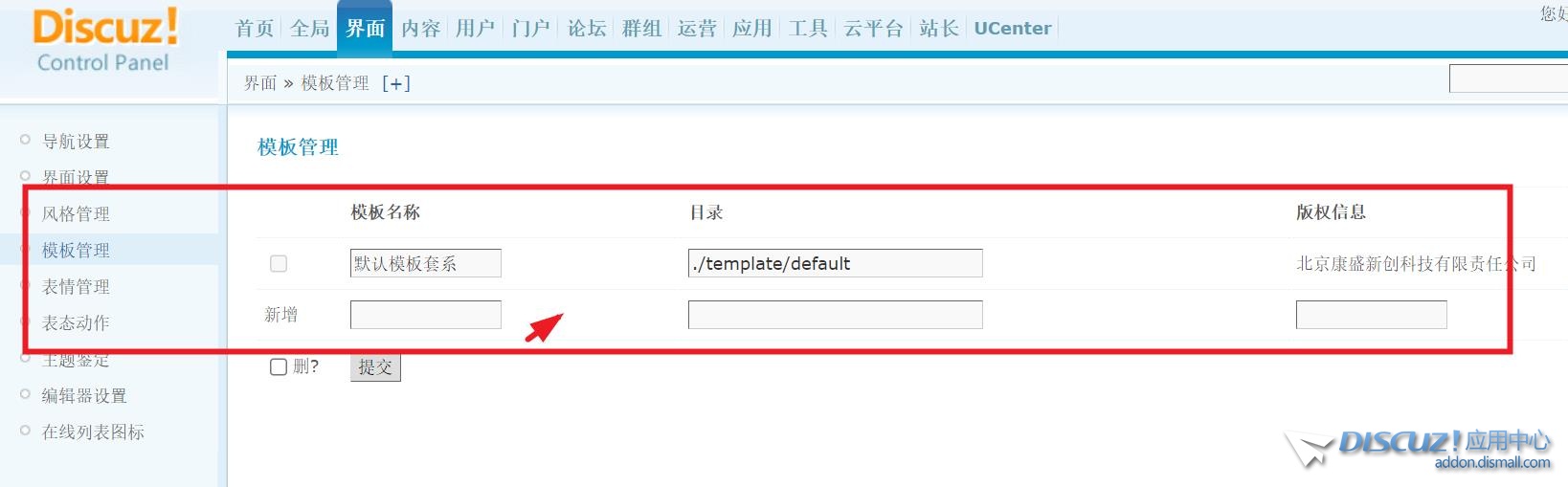 X3.5下進(jìn)入后臺(tái),模板,設(shè)計(jì)新模板,模板套系管理 就有了 更多開發(fā)文檔查看:https://www.discuzlab.com/x-docs/develop/dev_template.html |