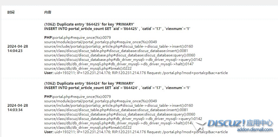 天外飄仙 發(fā)表于 2024-4-28 15:23 不是重復(fù)提交,發(fā)現(xiàn)重復(fù)aid確實(shí)存在,但是這些已經(jīng)是刪除,在門戶回收站了,不知道為什么會重復(fù)用這個aid |
