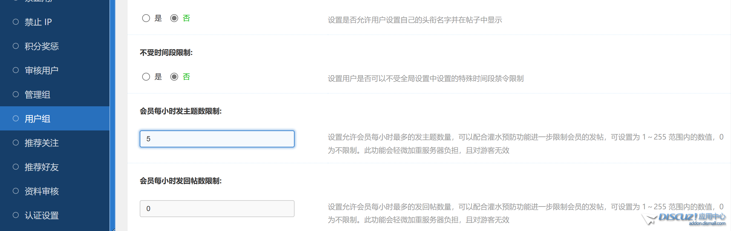 ![]() 首選,連接php虛擬主機下載這三個文件下載到本地電腦 /source/language/lang_admincp.php /source/language/lang_message.php /source/language/lang_message.php 然后以此修改、替換代碼如下: 1、修改discuz!x2.5后臺功能菜單設(shè)置顯示提示 使用文本編輯editplus打開\source\language\lang_admincp.php 查找定位約3703行 1 'usergroups_edit_basic_hour_threads'=> 2 '會員每小時發(fā)主題數(shù)限制', 3 'usergroups_edit_basic_hour_threads_comment'=> 4 '設(shè)置允許會員每小時最多的發(fā)主題數(shù)量, 5 可以配合灌水預(yù)防功能進一步限制會員的發(fā)帖, 6 可設(shè)置為 1~255 范圍內(nèi)的數(shù)值,0 為不限制。 7 此功能會輕微加重服務(wù)器負擔(dān),且對游客無效', 8 'usergroups_edit_basic_hour_posts'=> 9 '會員每小時發(fā)回帖數(shù)限制', 10 'usergroups_edit_basic_hour_posts_comment'=> 11 '設(shè)置允許會員每小時最多的發(fā)回帖數(shù)量, 12 可以配合灌水預(yù)防功能進一步限制會員的發(fā)帖, 13 可設(shè)置為 1~255 范圍內(nèi)的數(shù)值,0 為不限制。 14 此功能會輕微加重服務(wù)器負擔(dān),且對游客無效', 替換 1 'usergroups_edit_basic_hour_threads' 2 => '會員每天發(fā)主題數(shù)限制', 3 'usergroups_edit_basic_hour_threads_comment' 4 => '設(shè)置允許會員每天最多的發(fā)主題數(shù)量, 5 可以配合灌水預(yù)防功能進一步限制會員的發(fā)帖, 6 可設(shè)置為 1~255 范圍內(nèi)的數(shù)值,0 為不限制。 7 此功能會輕微加重服務(wù)器負擔(dān),且對游客無效', 8 'usergroups_edit_basic_hour_posts' 9 => '會員每天發(fā)回帖數(shù)限制', 10 'usergroups_edit_basic_hour_posts_comment' 11 => '設(shè)置允許會員每天最多的發(fā)回帖數(shù)量, 12 可以配合灌水預(yù)防功能進一步限制會員的發(fā)帖, 13 可設(shè)置為 1~255 范圍內(nèi)的數(shù)值,0 為不限制。 14 此功能會輕微加重服務(wù)器負擔(dān),且對游客無效', 2、用戶組每天發(fā)帖限制提示 使用文本編輯editplus打開\source\language\lang_message.php 查找約144行 1 'thread_flood_ctrl_threads_per_hour' => 2 '抱歉,您所在的用戶組每天限制發(fā)主題 {threads_per_hour} 個,請稍候再發(fā)表', 替換 1 'thread_flood_ctrl_threads_per_hour' => 2 '抱歉,您所在的用戶組每天限制發(fā)主題 {threads_per_hour} 個,請稍候再發(fā)表', 3、修改檢驗程序文件:會員每小時發(fā)帖數(shù)限制更改為會員每天發(fā)帖數(shù)限制 使用文本編輯editplus打開\source\class\table\table_common_member_action_log.php 1 查找約31行 2 public function count_per_hour($uid, $type) { 3 return DB::result_first('SELECT COUNT(*) FROM %t WHERE dateline>%d AND `action`=%d AND uid=%d', array($this->_table, TIMESTAMP - 3600, 4 getuseraction($type), $uid)); 5 } 替換 1 public function count_per_hour($uid, $type) { 2 return DB::result_first('SELECT COUNT(*) FROM %t WHERE dateline>%d AND `action`=%d AND uid=%d', array($this->_table, TIMESTAMP - 86400, 3 getuseraction($type), $uid)); 4 } 將上述修改完畢后,上傳到原目錄進行覆蓋后,完成限制論壇會員每天發(fā)帖數(shù)量的限制。效果如下對比 Dz后臺默認的每小時發(fā)帖限制限制 |