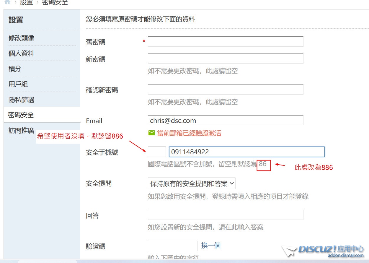 我是臺(tái)灣地區(qū)用戶,Discuz默認(rèn)不打的話,是留86,但臺(tái)灣這邊是用886,希望能改為使用者不填資訊,就預(yù)設(shè)886 另外一個(gè)是模版這邊也寫(xiě)86,也希望能改為886。 請(qǐng)問(wèn)有人知道改哪些檔案嗎? ... 查看全文