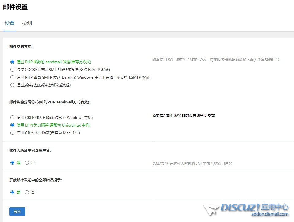郵件設置 通過 PHP 函數(shù)的 sendmail 發(fā)送(推薦此方式) 使用 LF 作為分隔符(通常為 Unix/Linux 主機) 但是收不到郵件,這是什么情況 查看全文