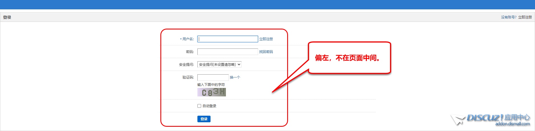 將游客瀏覽權(quán)限關(guān)閉后,發(fā)現(xiàn)無論頁面寬度調(diào)整多少,這個登錄頁面顯示都偏左,感覺看著不舒服,想把它居中顯示,請問老師們,在哪個地方調(diào)整啊? ... 查看全文
