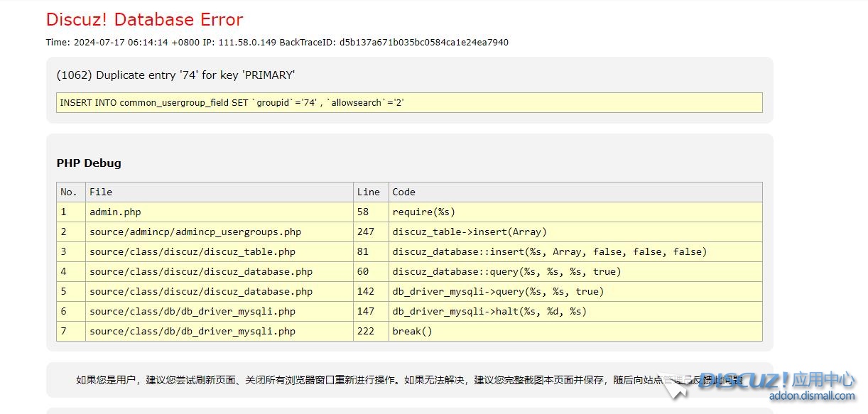 根據(jù)數(shù)據(jù)表,是用戶組詳細設(shè)置字段表報錯重復插入了 |