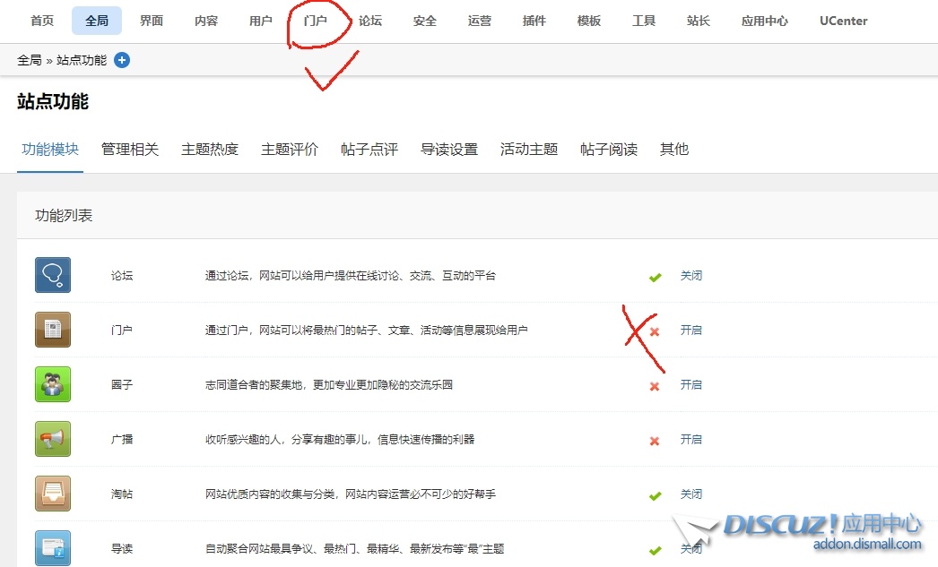 可以修改 代碼 僅對(duì)管理員 開(kāi)啟門(mén)戶功能……這樣對(duì)其他用戶來(lái)講 就等于是沒(méi)開(kāi)啟門(mén)戶…… 確實(shí)需要的話 可也加 QQ 有償代勞 |