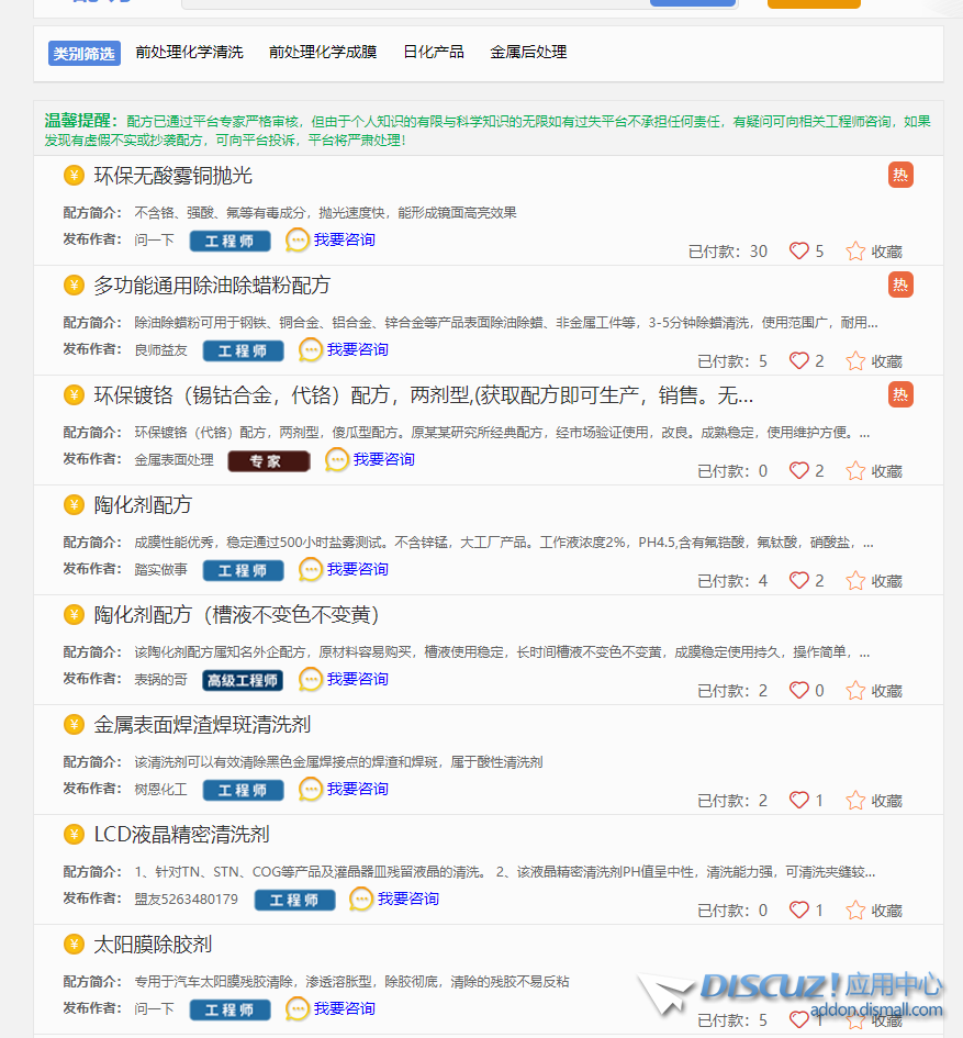 預(yù)算低 用分類信息+積分購買分類信息可見(https://addon.dismall.com/plugins/tshuz_buysort.html) 預(yù)算高一些: http://r615.cn/plugin.php?id=service:index 配方的話涉及到組分等等,如果嚴(yán)格起來其實(shí)很復(fù)雜 |