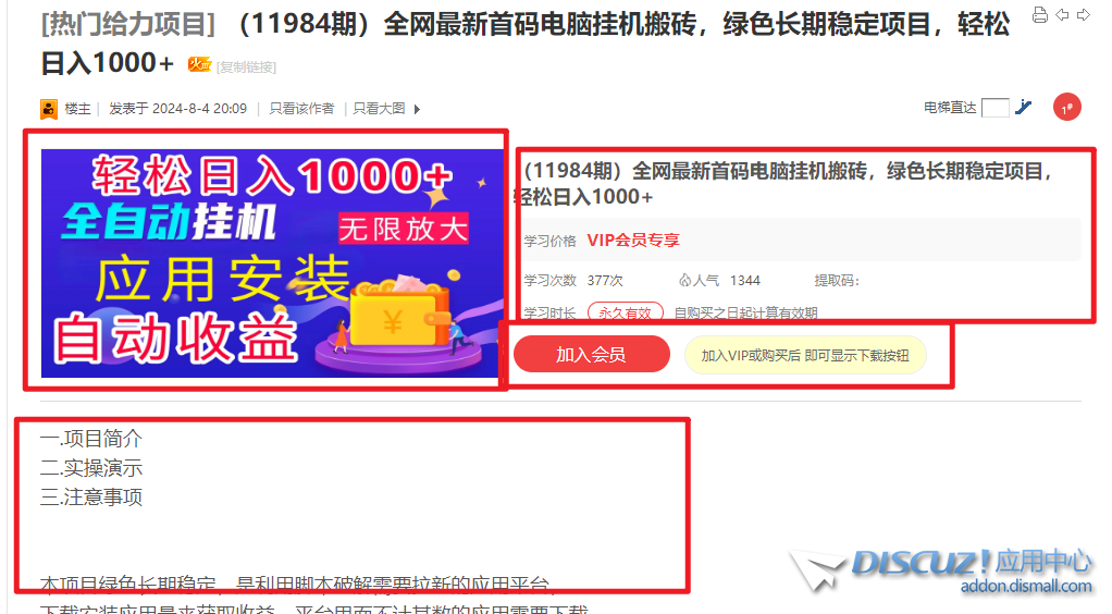 帖子頁面的加入會(huì)員點(diǎn)擊后跳轉(zhuǎn)購買用戶組,購買后可看隱藏的內(nèi)容 誰知道這是用了什么插件還是什么 查看全文