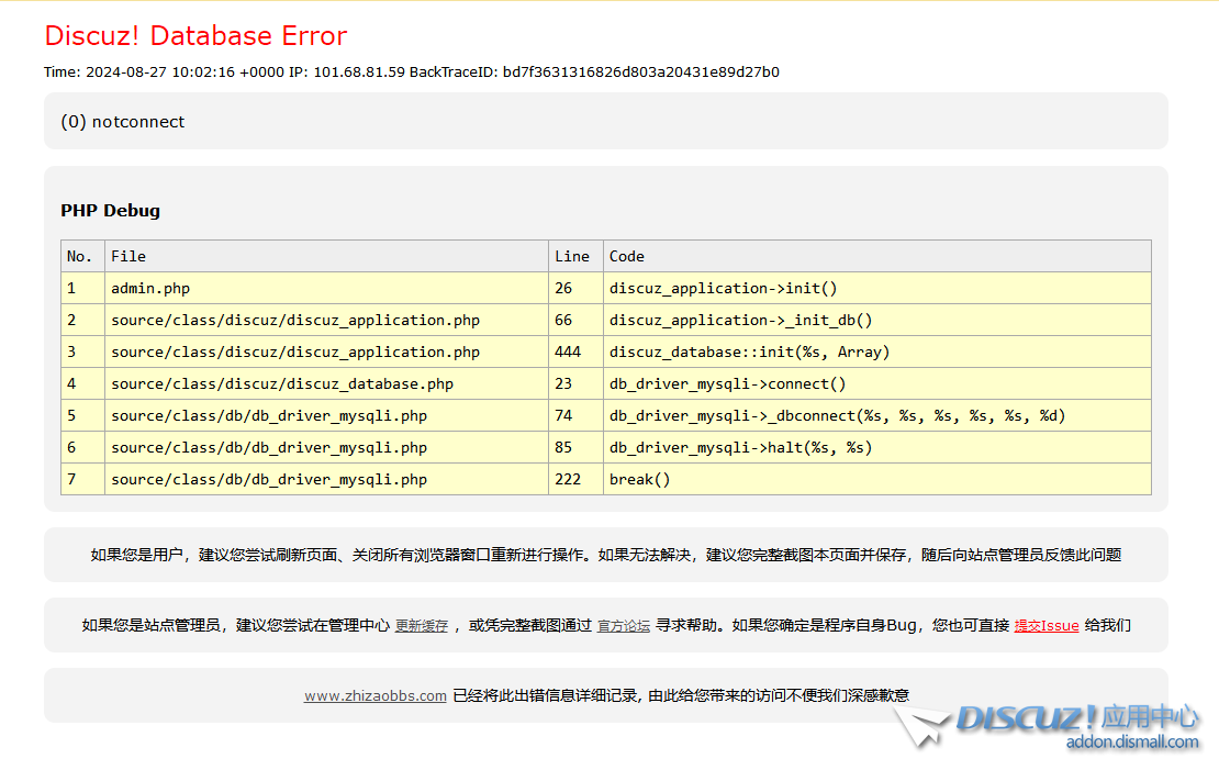 截圖顯示是數(shù)據(jù)庫(kù)掛了,檢查服務(wù)器的mysql數(shù)據(jù)庫(kù)配置吧 |