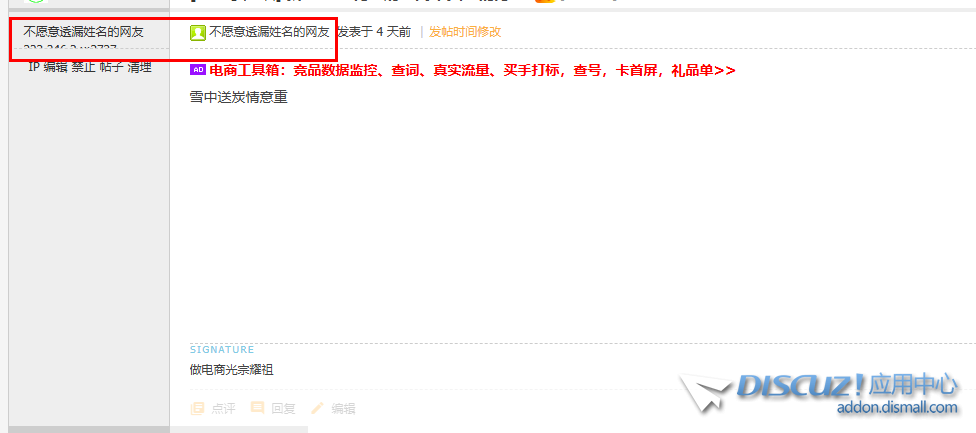 DISCUZ X3.5版本的bug,用戶組和論壇板塊都設(shè)置了禁止匿名發(fā)帖,但是還有“不愿意透露姓名的網(wǎng)友”進行回帖。 這種BUG什么時候可以修復(fù)啊。 萬一有人利用這個BUG,宣傳一些不當(dāng)言論,我們作為論壇管理者可要被 ... 查看全文