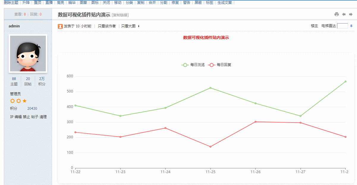 【動(dòng)態(tài)演示】帖子每日數(shù)據(jù)可視化每日查看回復(fù)數(shù)據(jù)可視化 柱狀圖 查看全文