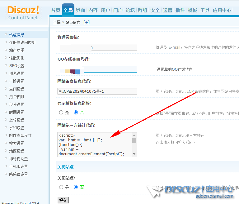 我在百度申請的統(tǒng)計代碼在后臺(下圖)這個地方提交了 查看全文