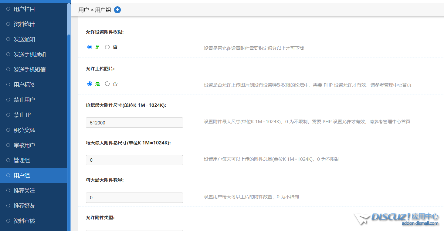 我在用戶組設(shè)置了jpg,zip等附件大小為:512000 查看全文