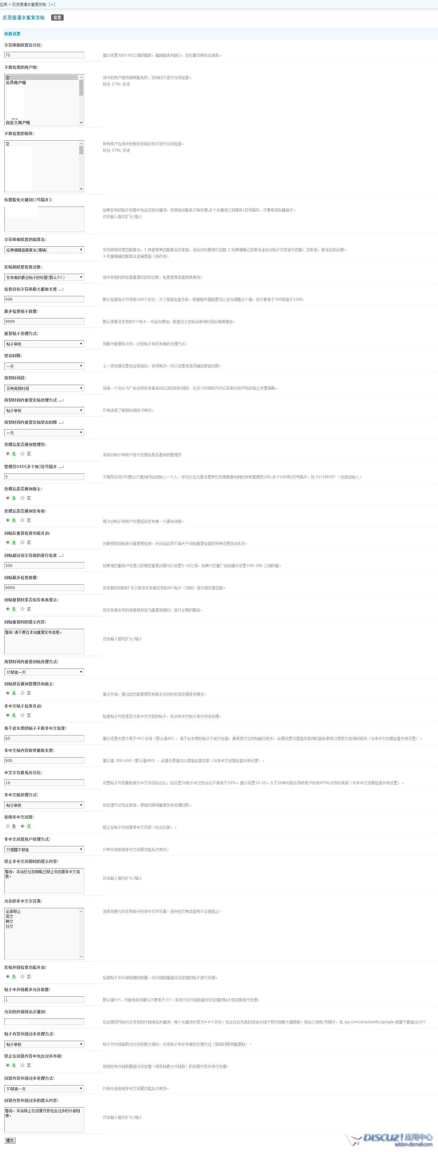 evenbetter 發(fā)表于 2019-8-28 09:09 插件“反惡意灌水重復(fù)發(fā)帖”可以設(shè)置標(biāo)題相似百分比 |