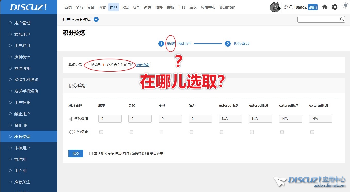 搜索特定用戶名進(jìn)行積分獎(jiǎng)懲,提示搜索到一個(gè)用戶,但無(wú)法選擇目標(biāo)用戶,若直接輸入積分?jǐn)?shù)量并提交后,對(duì)應(yīng)用戶的積分并不改變。請(qǐng)幫忙測(cè)試一下這個(gè)功能是否正常。 ... 查看全文