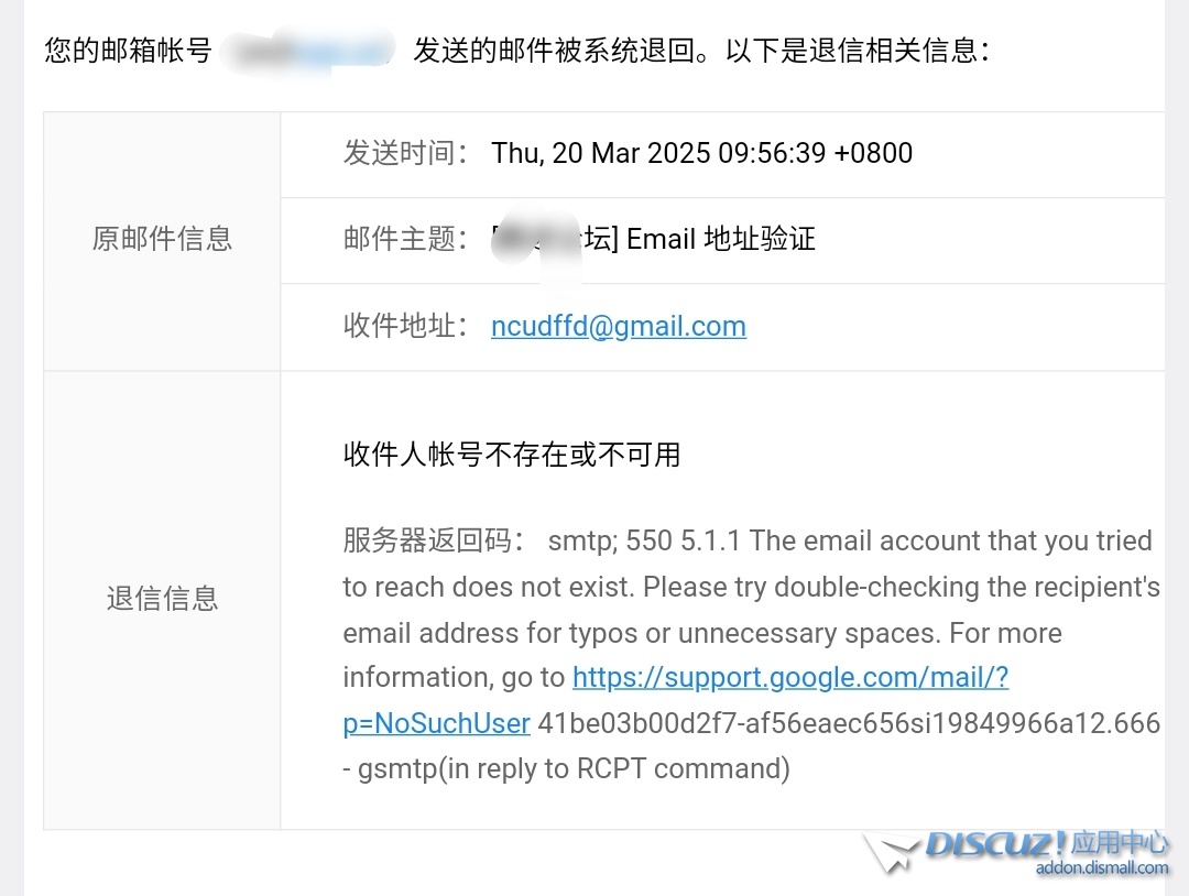 郵箱里充斥著大量“收件人帳號(hào)不存在或不可用”的退信 收到的電子郵件提醒 應(yīng)該每天都有注冊(cè)機(jī)用虛假郵箱嘗試注冊(cè),導(dǎo)致這種退信郵件非常多 論壇綁定的郵箱每天都收到這種發(fā)送郵件失敗的退信,不厭其煩 有沒有好的 ... 查看全文