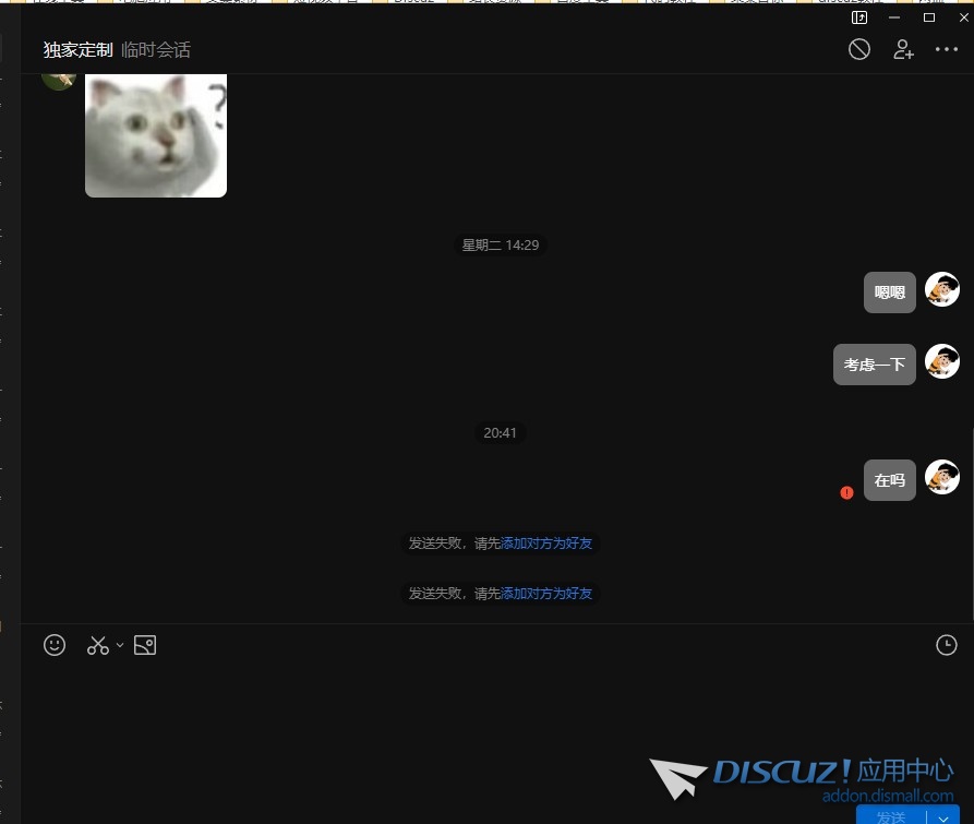 一定 發(fā)表于 2025-4-10 20:59 頭天加的好友,第二天刪除的我,所以顯示臨時(shí)消息 |